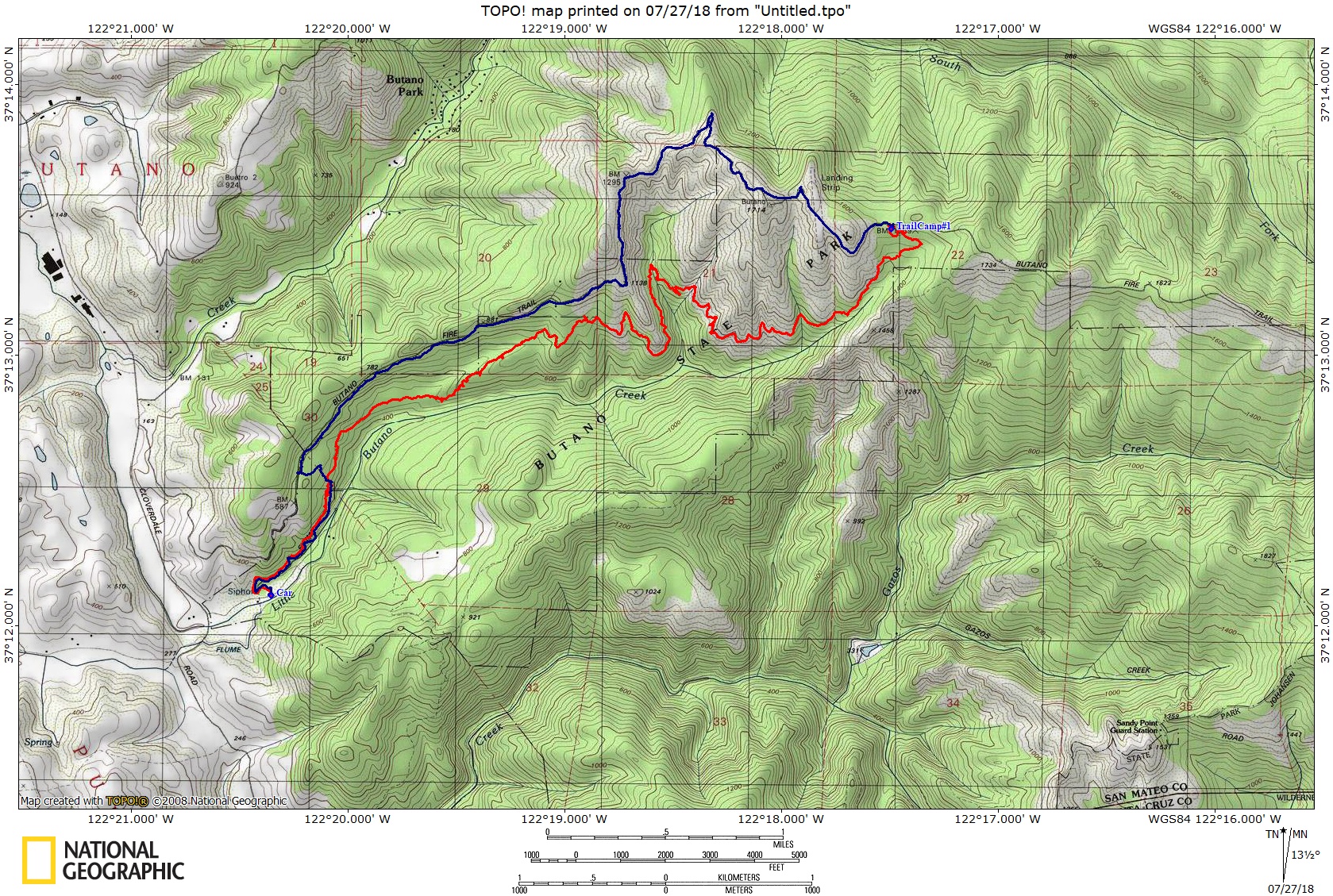 is the profile of day two. We used the Butano Fire Road on the way out